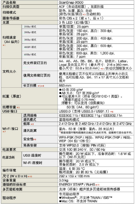 富士通(Fujitsu)ix500扫描仪A4高速高清彩色双面自动馈纸WIFI无线传输