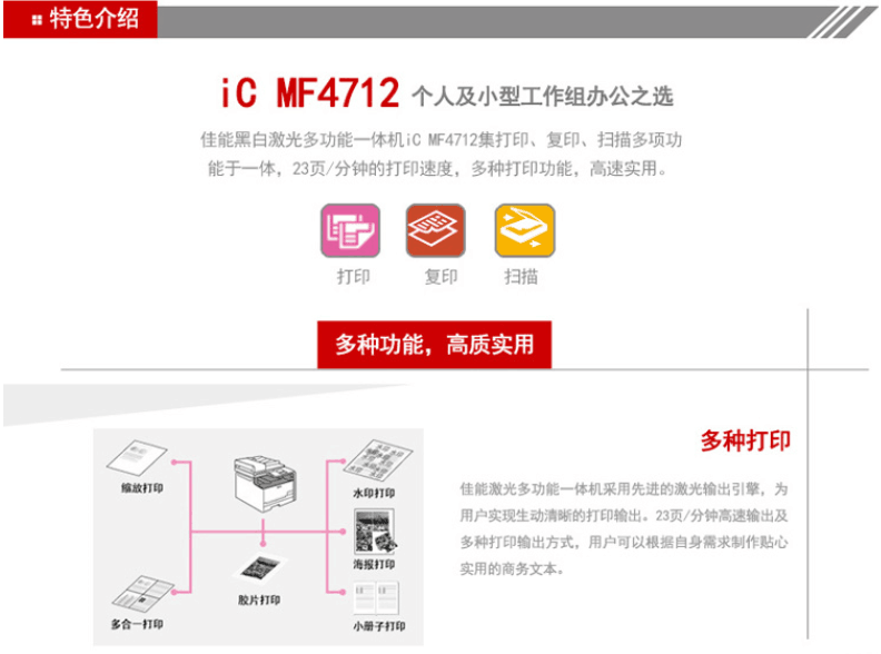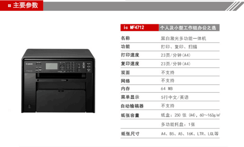 佳能 (Canon) imageCLASS MF4712 激光多功能一体机