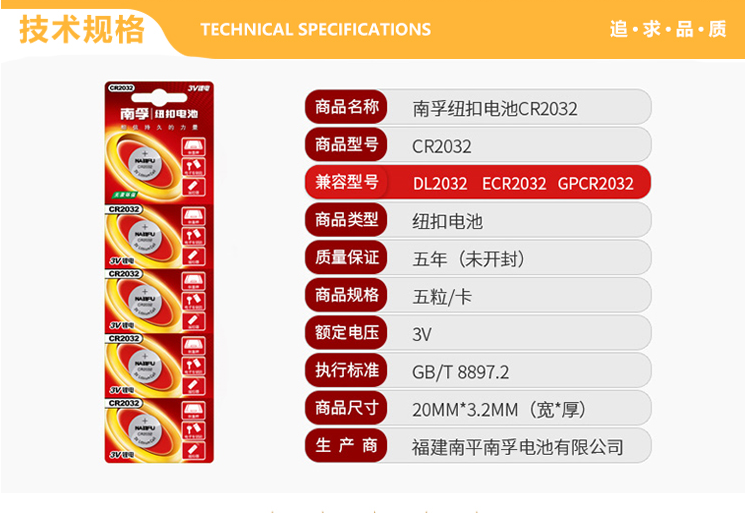 南孚(NANFU) 纽扣电池 CR2025 50粒/盒