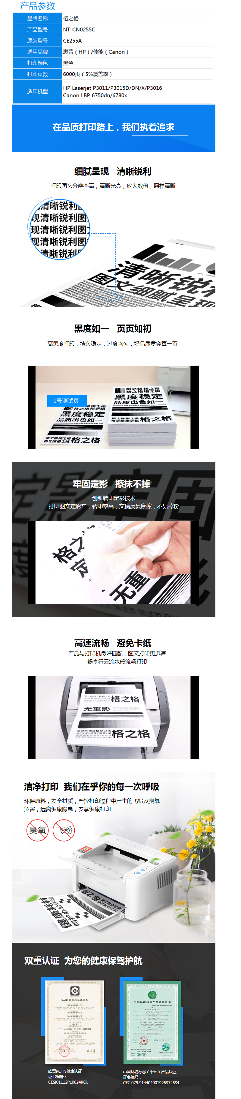 格之格惠普NT-C0255C硒鼓 适用CE255A p3015dn p3016 p3011 G201