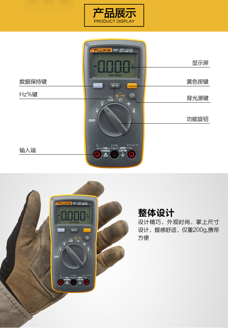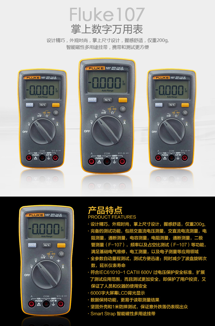 福禄克(FLUKE)F101 掌上数字万用表 FLUKE-107 G20160976