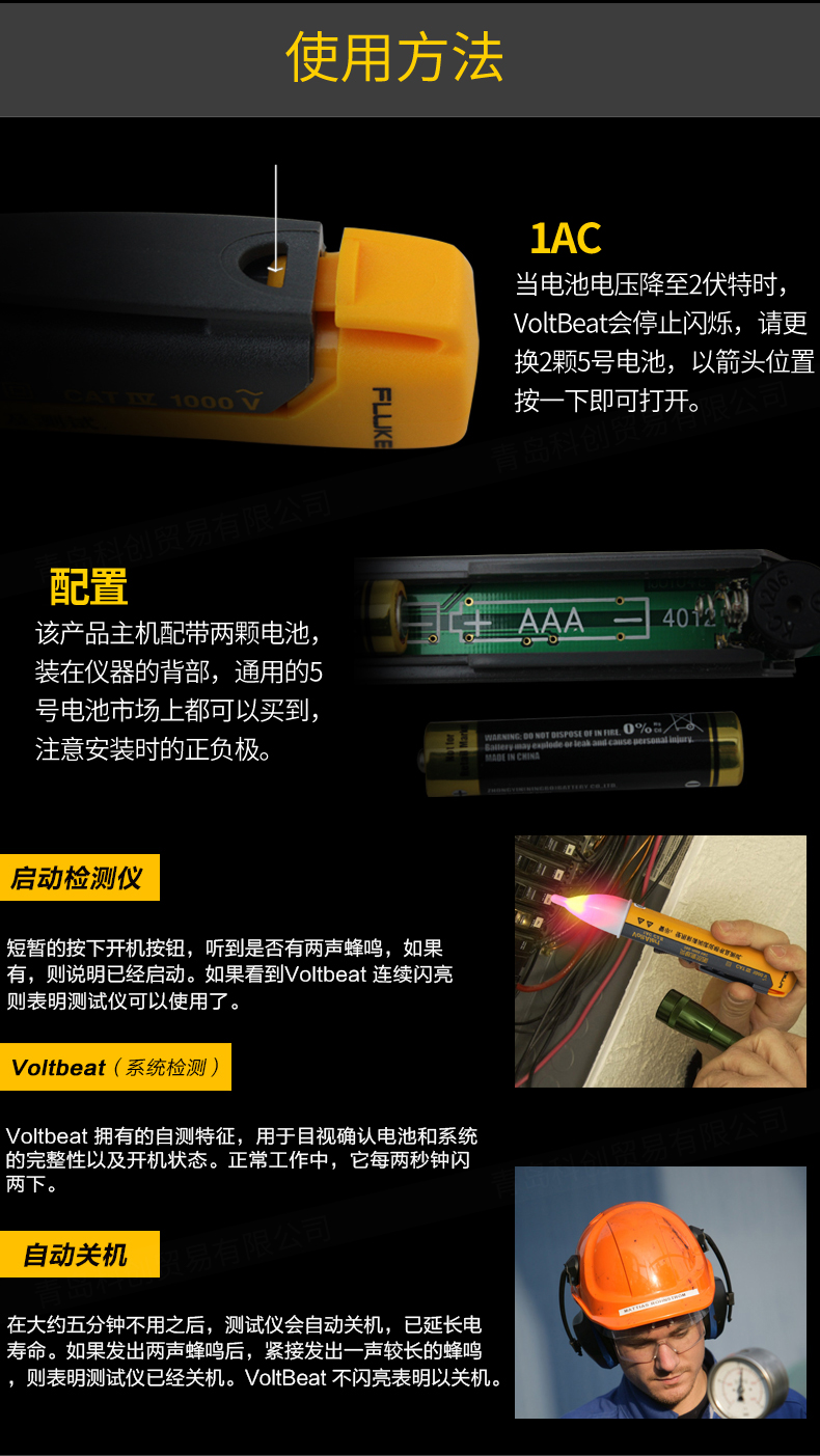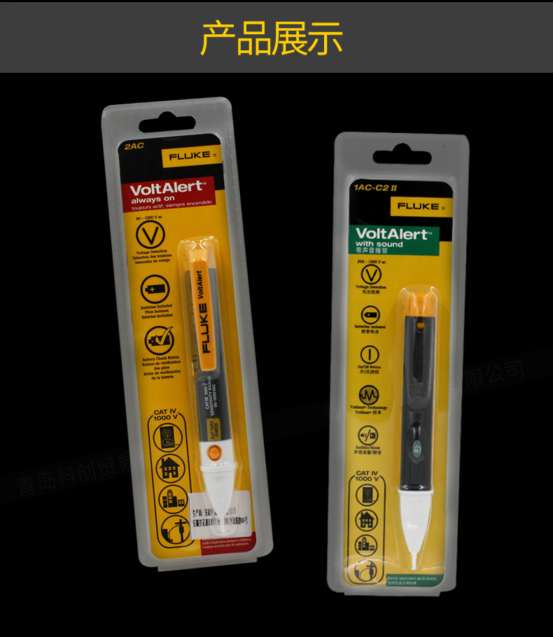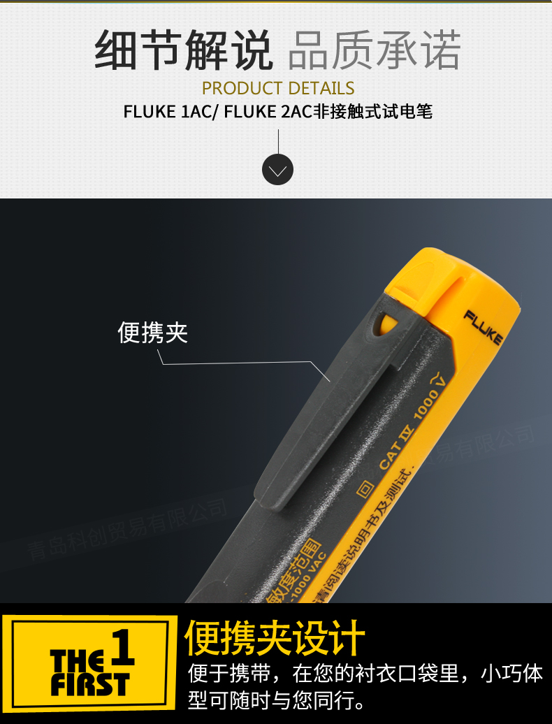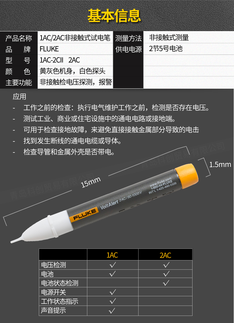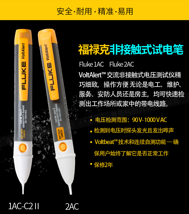 福禄克(FLUKE)1AC-C2 II 非接触式试电笔 验电笔 测电笔 带声音指示 亮灯指示 200-1000V G20160976
