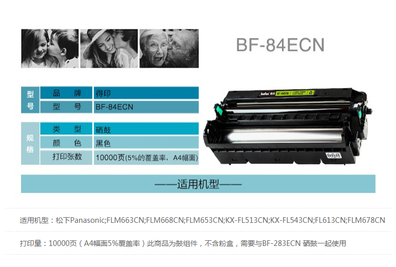 得印(befon) BF-84ECN 硒鼓组件 KX-FA84E(适用松下PanasonicFLM668/653CN/513/543/613) G10758