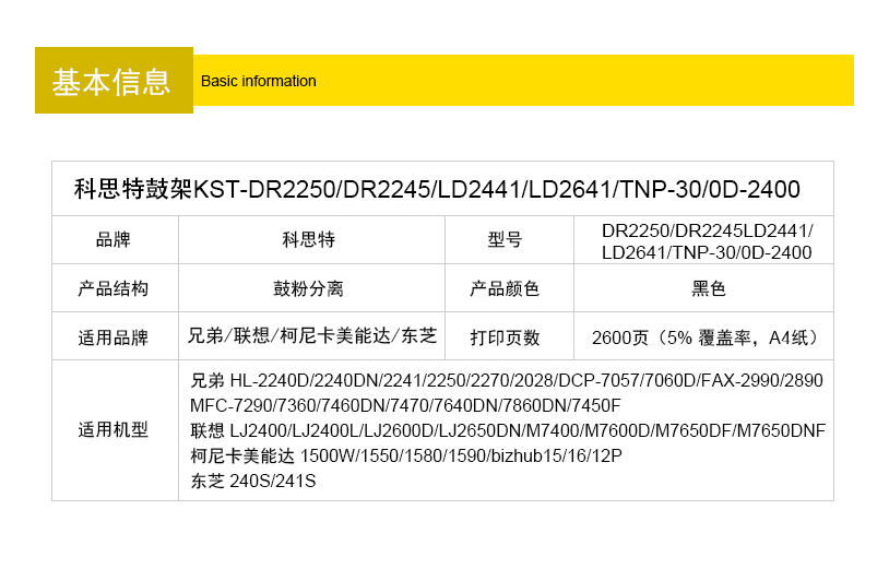科思特DR2250鼓架 适用兄弟DR2245硒鼓 联想LD2441 东芝TNP-30 柯美2400 专业版