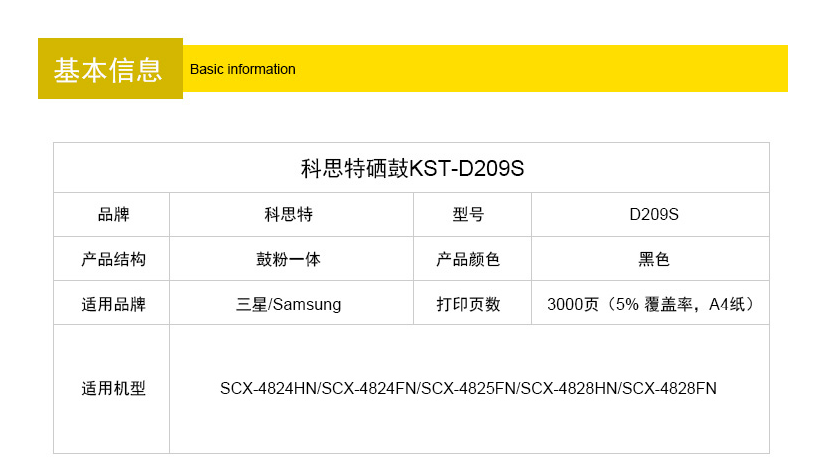 科思特D209S 黑色硒鼓 适用三星SCX-4824HN/FN 4825FN 4828HN/FN 专业版