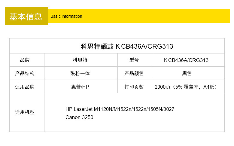 科思特CB436A硒鼓 适用惠普 P1505 P1500 M1522NF M1120 佳能3250 专业版