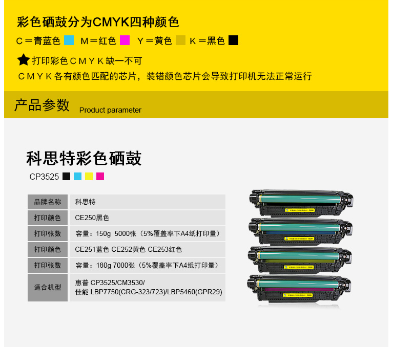 当前位置:首页 > 办公用品-硒鼓、粉盒-鼓粉盒 > 科思特K CE251A 硒鼓 适用惠普 CP3525 CM3530 LBP7750 青色 专业版