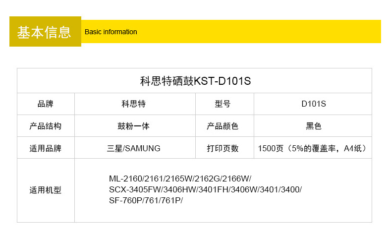 科思特 D101S 硒鼓 适用三星 ML-2160 SCX-3405FWSF-760P 专业版