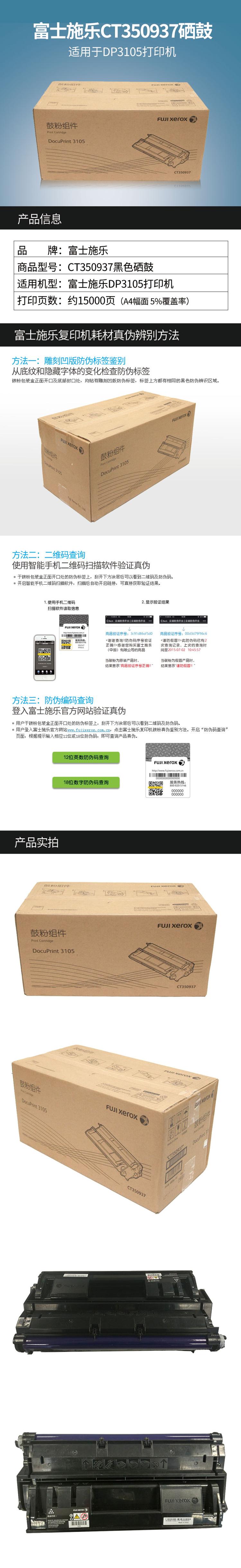 富士施乐(Fuji Xerox)CT350937 黑色硒鼓 适用DP3105