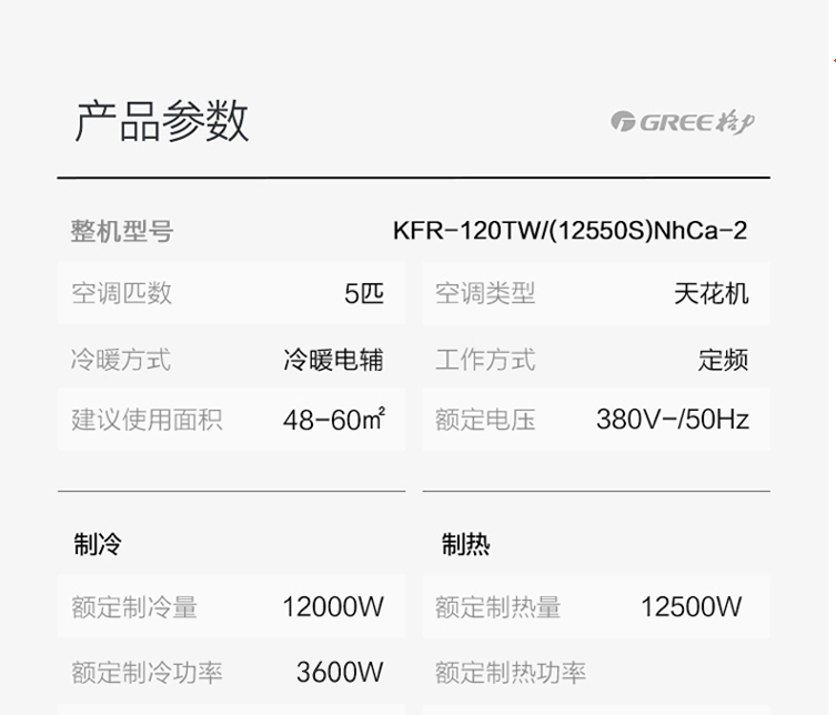 当前位置:首页 > 电气设备-生活用电器-空调机 > 格力(GREE)KFR-120TW/(12550S)NhCa-2天井空调 5匹冷暖 二级能效( 380v )