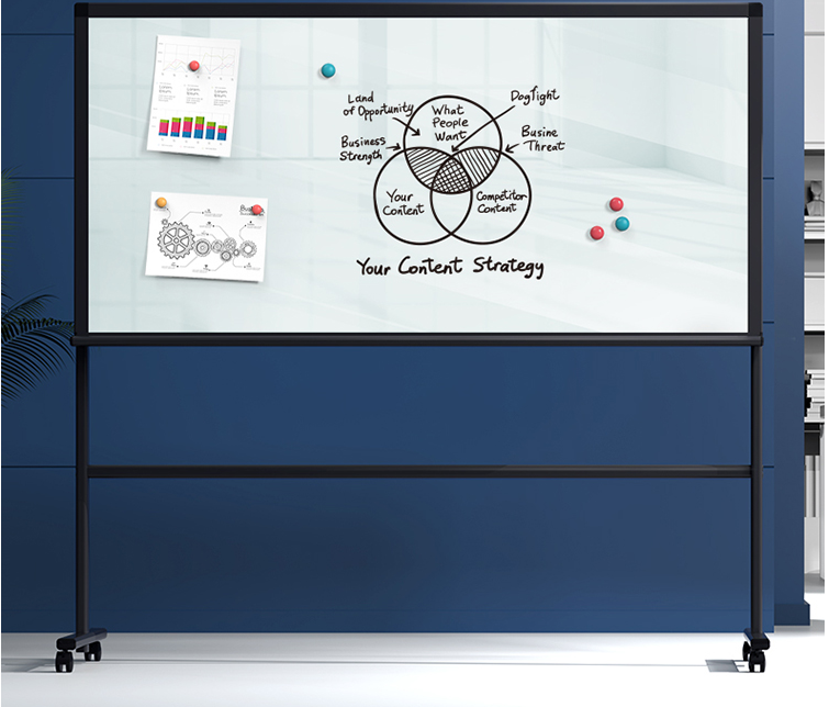 得力(deli)8739 支架式 可移动 钢化玻璃白板 90cm*180cm 强磁性 Z10007