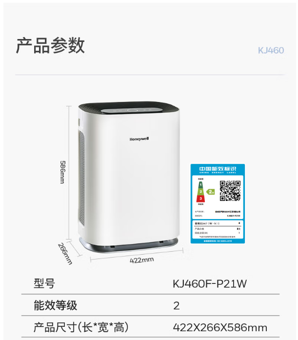 霍尼韦尔(Honeywell)KJ460F-P21W空气净化器 除甲醛除菌除霾除过敏原 家用办公