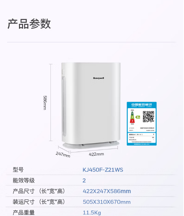 霍尼韦尔(Honeywell)KJ450F-Z21WS 空气净化器 家用办公除菌除甲醛雾霾净化器