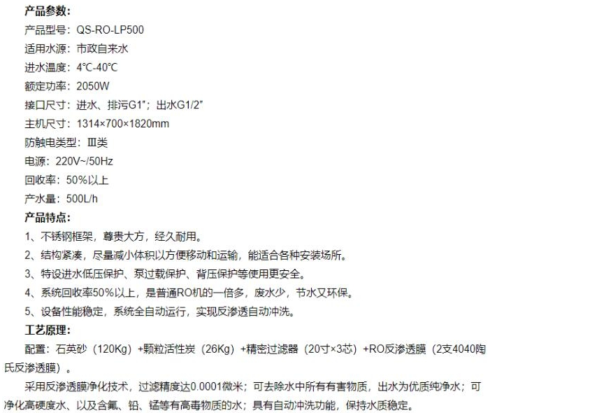 当前位置:首页 > 电气设备-生活用电器-净水器(停用) > 沁园 QS-RO-LP500商用纯水机