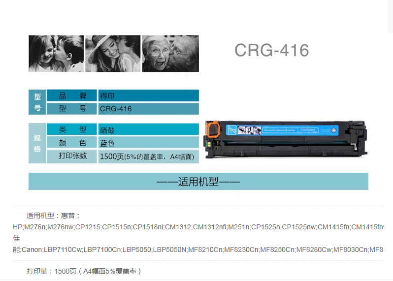 当前位置:首页 > 办公用品-硒鼓、粉盒-鼓粉盒 > 得印(befon) CRG-416 C蓝色硒鼓 适用佳能iC MF8050Cn/8030cn