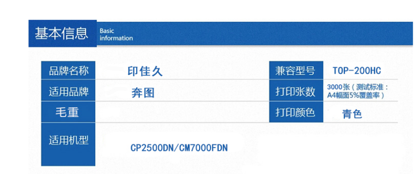 当前位置:首页 > 办公用品-硒鼓、粉盒-墨粉盒 > 印佳久TOP-200HC 青色碳粉 适用CP2500DN/CM7000FDN
