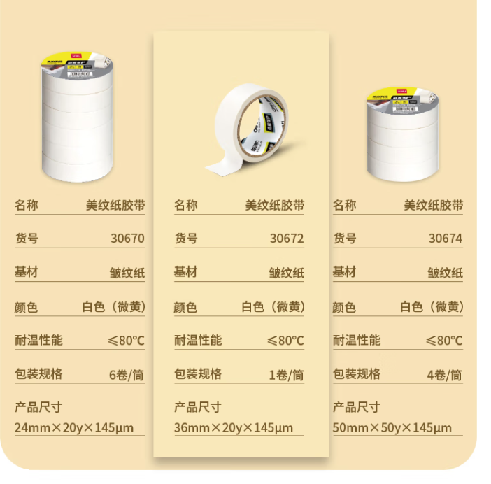 当前位置:首页 > 办公用品-文教用品-文具 > 得力 30672美纹纸胶带36mm*20y*145um(20卷装)